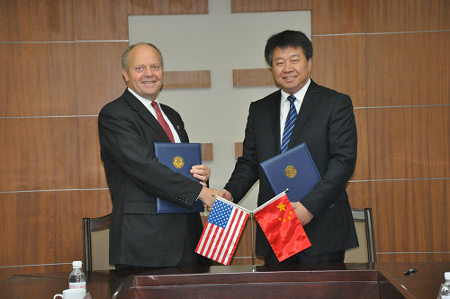 9月10日上午,伟德官网与美国奥克兰大学校际合作签字仪式在图书科技楼会议室举行。李国华副校长、国际交流处处长刘春堂、计算机学院院长王斌以及奥克兰大学工程与计算机科学学院院长Louay Chamra教授、中国项目负责人Gary Barber教授、中国项目负责人杨连祥教授参加了签字仪式。