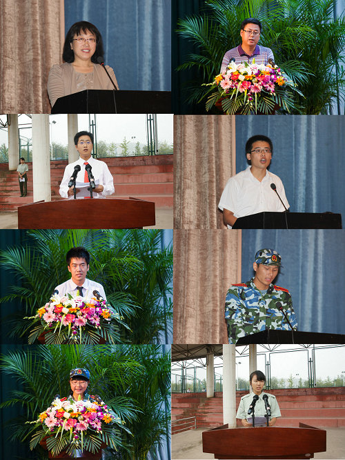 在校生代表机械工程学院机械设计制造及其自动化专业2010级5班纪晓鹏、经贸学院统计专业2011级1班尹珅分别在开学典礼上作了发言,介绍了自己在大学期间学习、生活的经历和心得体会。新生代表土木工程学院土木工程专业2013级10班钱文杰、管理学院造价专业2013级2班王琳、工程管理系李桂霆在发言中表示,一定会珍惜宝贵大学时光,努力学习知识,不断开拓视野,在不断磨砺中成长成才、报效国家。