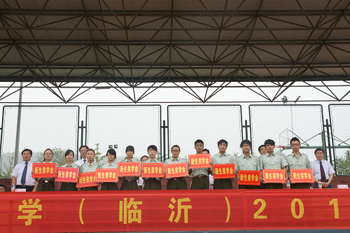 在临沂校区,临沂市人民政府副市长侯晓滨出席典礼并讲话,临沂市教育局局长祖旭东,费县县委书记、县人大常委会主任杜昌伟,费县人民武装部以及山东华通路桥工程有限公司负责人等参加典礼。典礼由副校长、临沂校区校长张伟星主持。临沂校区副校长朱卫东宣读获新生奖学金名单,共有24名同学获得新生奖学金。
