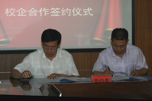 张明义书记与任志旭总经理在《校企合作协议书》上签字