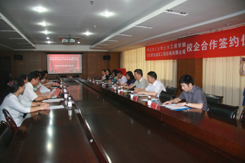 校党委副书记杨向荣在讲话中感谢校友对母校发展的支持,对此次校企合作表示热烈祝贺,他说这是非常有意义的事情,既实现了企业的社会责任,也增强了学校办学的实践环节。他简要介绍了学校的发展历史、近几年在招生就业方面取得的成绩,以及学校在长期的办学实践中,秉承“百折不挠、刚毅厚重、勇承重载”的理工精神传统,涌现出的一大批优秀校友情况。他希望学院珍惜企业的帮助,认真做好协同创新工作,落实好校企合作各项事宜。