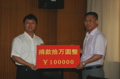 于德湖院长作为受赠方代表接受任志旭总经理为母校60周年校庆的10万元捐款