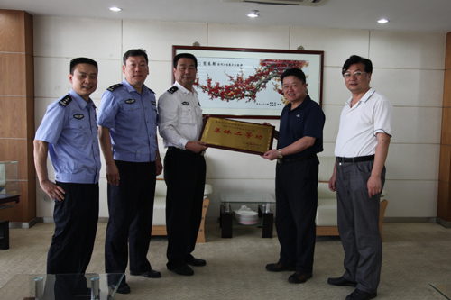 7月11日,青岛市公安局同志来到伟德官网,代表省公安厅,授予伟德官网保卫处集体二等功,张健副校长代表学校,接受了二等功的牌匾。