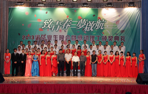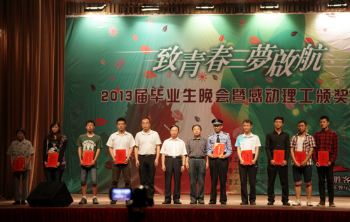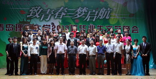 6月18日、19日、20日晚,校团委、学生处主办的“致青春 梦启航”2013届毕业生文艺晚会暨感动理工人物评选颁奖仪式分别在嘉陵江路校区、长江路校区和市北校区上演。校党委书记薛允洲、校党委副书记杨向荣、副校长李东、校长助理朱申红出席晚会现场,黄岛校区办、党委宣传部、招生就业办公室、学生处、团委、部分学院负责人及数千名师生观看了演出。