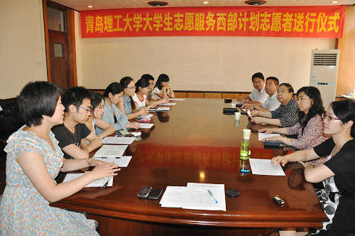 送行会上,8名志愿者表达了立志成才、回报社会、服务西部、建设祖国的坚定决心,表示一定要珍惜去西部工作的锻炼机会,主动适应环境,在志愿服务西部的实践中勇于接受各种挑战和考验,把所学知识应用于工作实践,让自己的西部生活过得充实而有意义,充分展现理工学子的风采,决不辜负学校领导老师和同学们的期望,尽自己最大的努力投身于西部的经济建设,在实践中磨练意志,增长才干,用自己的青春智慧和一腔热血为西部的发展做出自己应有的贡献。
