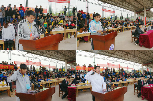 副校长朱卫东致开幕辞、闭幕辞,学工部科长窦传海主持开幕式、闭幕式,体育教研室主任闫炳才宣布比赛成绩,团委副书记王彤宣布获得精神文明班级名单,教师刁常光、学生侯占杰分别代表裁判员、运动员宣誓。