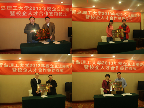 3月22日下午,伟德官网2013年校企人才合作座谈会暨合作签约授牌仪式在嘉陵江路校区举行,此次座谈会邀请了包括山东玲珑集团、山东德州建设集团、北新建设集团等16家知名企业的代表参加。副校长李东、校区办、招就办、学生处、教务处、研究生处、团委相关部门和部分学院负责人参加了座谈。