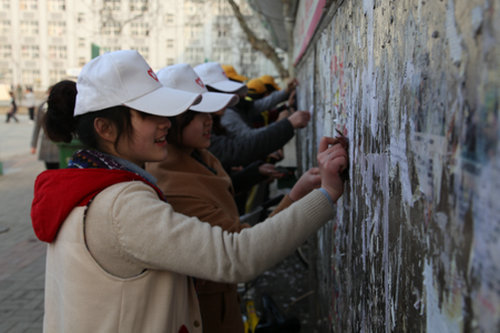 仰望雷锋,更要走进雷锋;收获感动,更要付诸行动。在3月5日“学雷锋纪念日”当天,各学院各班级召开主题班会,深入学习雷锋精神,并积极组织开展校内外学雷锋实践活动。各学院及学生组织团体组织学雷锋小分队走出校园开展了文明交通协管、社区清洁服务、幼儿园义务服务等活动,在校内开展了“我爱我家”校园清洁美化活动,对大学生活动中心、田径场、广场、教学楼等公共区域进行了卫生清扫,对教室桌面、墙壁等乱写、乱涂、乱画等进行了清理,以自己的行动美化校园,营造良好的学习、生活环境。