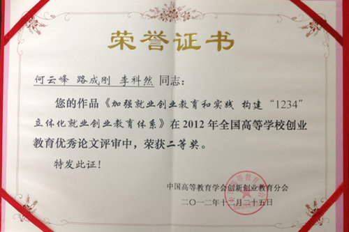 本次会议学习讨论了十八大报告中有关创新创业教育的内容和精神;听取了中南大学党委书记高文兵副会长做的学会工作报告及题为《高校内涵式发展与国家人才红利-以高校创新型教育为视角》专题报告;审议通过了新增会员单位名单;清华大学、黑龙江大学等九所做了典型发言;评选表彰了全国高等学校创业教育研究与实践先进单位、先进个人及创新创业优秀论文。伟德官网学生处纪玉超老师获“全国创业教育工作先进个人”,选报参会论文十一篇,其中获二等奖一篇、三等奖五篇。