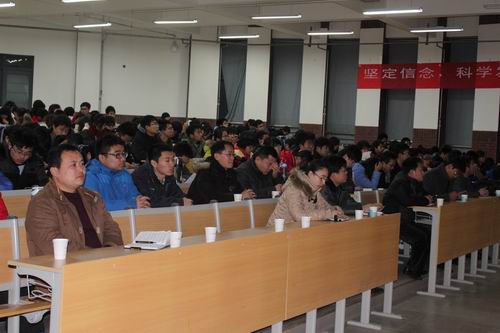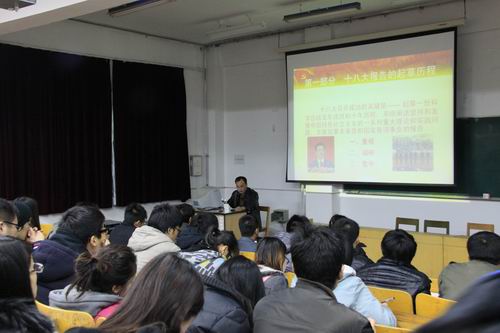 最后,党委宣传部部长陈伟为师生作“坚定信念,科学发展,奔向美好前程”主题十八大精神学习辅导报告。他从十八大报告的起草历程、深远意义、理论创新与亮点以及给我们的启示四个方面,对十八大的新思想、新观点、新要求做了全面分析和详细解读。陈部长整个报告脉络清晰、生动形象,主题鲜明,重点突出,深入浅出,具有很强的指导性、针对性和启发性,使广大师生受益匪浅。
