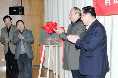 土木学院党总支书记张明义与青岛建安建设集团总裁陈相华代表双方在《校企合作协议书》上签字,校党委副书记杨向荣、青岛市建筑业协会会长卢举林、青岛建安建设集团董事长杨建强、土木学院党总支书记张明义共同为大学生就业实习基地揭牌。(招就办 土木学院)