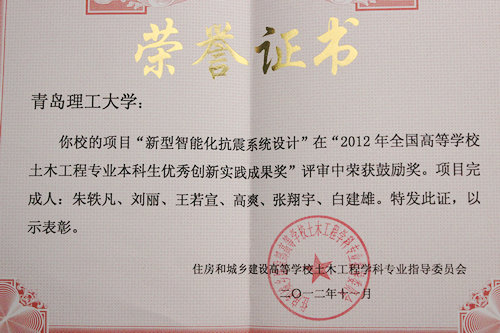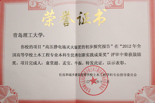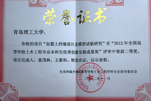 近日,在由住房和城乡建设高等学校土木学院专业指导委员主办的“2012年全国高等学校土木工程专业本科创新实践成果奖”评审中,伟德官网土木学院学生参评的项目分别获得二等奖一项和鼓励奖两项。