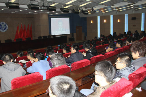 四方校区学生干部、党员在报告厅收看开幕盛况