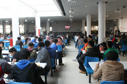 黄岛校区学生在食堂收看十八大开幕盛况