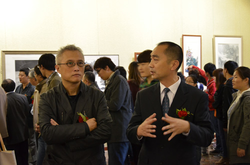 市文广新局副局长王琳与著名艺术家王水泊教授品评作品