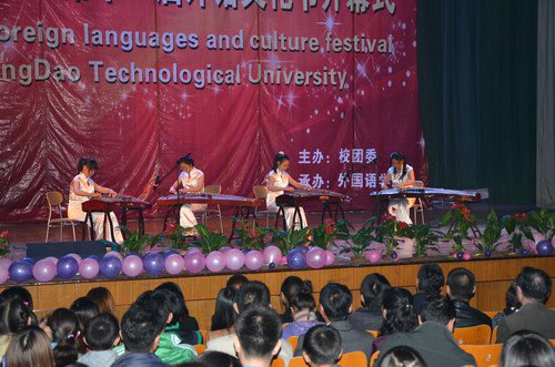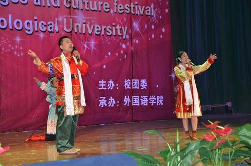 本届外语文化节以“春华十一载,外语情谊坚”为主题,分为专业竞赛、文化展示、专家讲座三大板块,内容丰富多彩,构思独具匠心。本届外语文化节开幕式以“爱国精神永传承、四海之歌共欢唱”为主线,师生同台演出,中外文化百花齐放,晚会现场始终洋溢着欢乐而又热烈的氛围。晚会在戏曲联唱《三家店》《谁说女子不如男》《新贵妃醉酒》的歌声里拉开帷幕,古汉舞步《茉莉花》风姿绰约,民乐齐奏《古筝》琴声悠扬,华丽而委婉的音符动人心魄。青春歌曲联唱带着劲爆的节拍,双节棍表演热情奔放,充分展示了伟德官网大学生的蓬勃活力和青春的风影。英语专业教研室高合顺教授和英语092班朱焕伟同学的师生歌伴舞《敖包相会》将全场的气氛推向高潮。英语112班张莉的相声《外国王子》幽默风趣,表演惟妙惟肖,引得在场观众阵阵掌声和喝彩声。韩语教研室的老师和同学们共同表演的《江南style》等节目,幽默风趣,晚会现场爆发了一阵阵热烈的掌声。最后,晚会在《春天的芭蕾》的歌声中圆满落幕。(学生记者 沈天考)