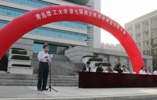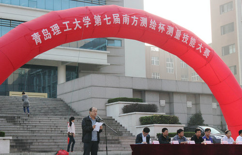 南方测绘仪器公司青岛分公司经理韩邦军代表南方测绘仪器公司预祝大赛圆满成功。裁判长王军老师宣读比赛规则,选手代表于宽发言代表参赛同学表示遵守比赛规则,诚信文明比赛。土木学院党总支书记张明义宣布比赛正式开始。