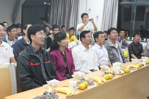 9月28日,在中秋佳节到来之际,副校长李东在学生处、团委等部门负责人陪同下,来到嘉陵江路校区新生班级迎中秋联欢会现场,看望慰问2012级新生。