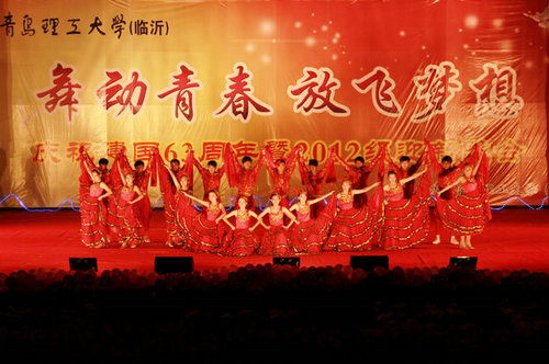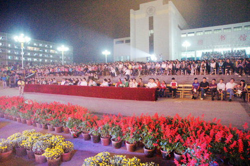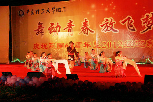 9月27日晚,临沂校区“舞动青春·放飞梦想”——庆祝新中国成立63周年暨2012级迎新文艺晚会在图书馆前广场举行。校区领导张伟星、江波、朱卫东、王西长、赵常德及各部门、系(部)负责人到场同师生一同观看晚会。
