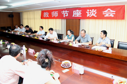 9月6日下午,学校在图书科技楼会议室召开教师节座谈会。校党委书记薛允洲、副书记刘龙海与来自各学院的11位优秀教师代表欢聚一堂,交流教学科研工作中的体会与感悟,畅谈教育教学改革中的成绩与期待。党办校办、组织部、工会、宣传部、人事处、教务处等职能部门负责人参加座谈会。