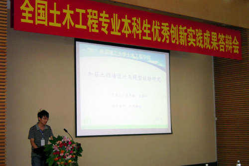 本届论坛由住房与城乡建设部全国高等土木工程学科专业指导委员会主办,哈尔滨工业大学承办,吸引了来自同济大学、清华大学、哈尔滨工业大学等31所具备土木工程学科较强实力高校的126位优秀学子参加,分为工程体验、特邀报告、论文交流、创新实践成果汇报、趣味竞赛等多个部分。伟德官网土木工程学院袁茂林、王新科两名学生在时伟教授的指导与带领下,从强手如林的竞争对手中凭借项目《加筋土挡墙设计及模型试验研究》脱颖而出获得全国土木工程专业本科生优秀创新实践成果二等奖,同名研究论文获优秀论文提名奖并和朱轶凡等同学的论文《新型智能化抗震系统设计》被《可持续发展的土木工程——第二届全国高校土木工程专业大学论坛论文及创新成果集》收录。