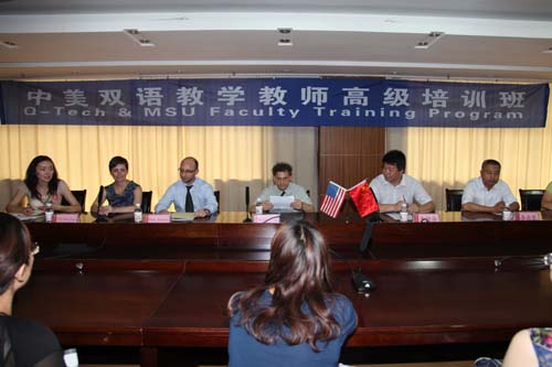 伟德官网双语教学教师高级培训班自2010年开始以来,迄今已是第三届。本届培训班自7月2日开始,为期四周,共开设了外语方法论及教学研讨、大学教师高级英语口语、大学教师高级英语写作课程,另外还组织了圆桌会议等,共同探讨社会文化、学术研究以及全球教育与交流等热点问题。