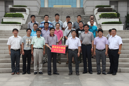 下午,起机931班校友在毕业十五年后也重聚校园,一同回忆母校生活并向学校捐赠了班级纪念树款。校党委副书记刘龙海代表学校接受捐赠并同大家合影留念。(校董校友办公室)