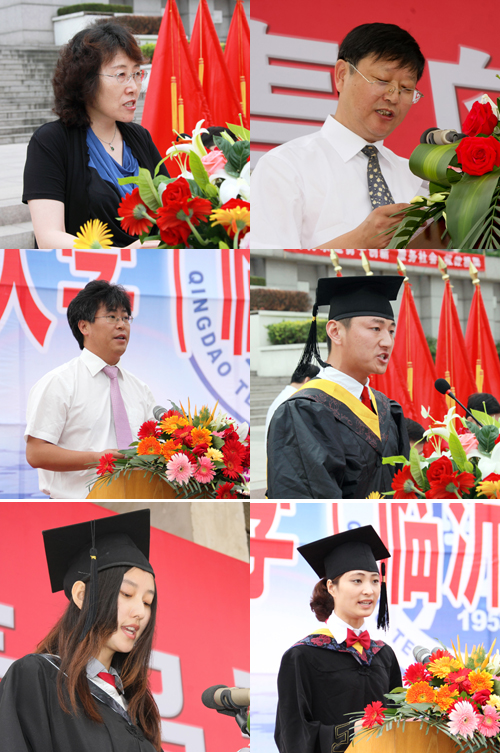 校长、博士生导师、洪堡学者仪垂杰发表了热情洋溢的讲话(全文另发,详见“杏坛理工”),校党委副书记杨向荣主持四方校区、黄岛校区毕业典礼,副校长赵铁军宣布各学院毕业生获得学位情况。