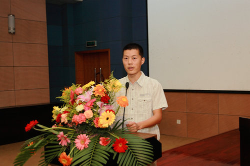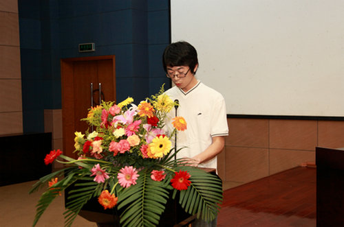 往届获资助学生代表钱林栋、本届获资助学生代表张晓林发言