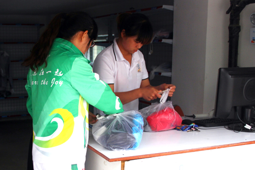 志愿者在洗衣收发服务点