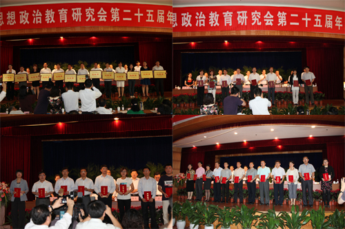 青岛高校政研会第25届理事会副秘书长孙波宣读表彰决定