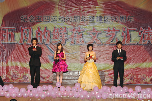 为纪念五四运动93周年暨建团90周年,进一步激发广大青年爱国、爱党和爱团的热情,5月24日晚7点,由校团委主办的“五月的鲜花”文艺汇演在四方校区礼堂拉开帷幕。校团委负责人、各学院党总支副书记、团总支书记及各学院学生代表观看了本场晚会。