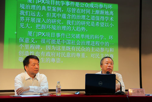 中国海洋大学王书明教授在揭牌仪式结束后,为伟德官网四百余名师生作了题为“中国环境治理的公众参与”的首场报告会。(人文学院)
