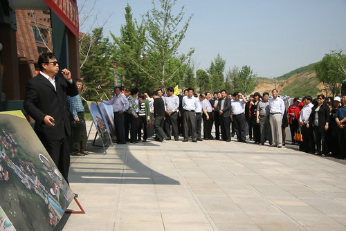 建筑学院院长、新校区副指挥张伟刚向人大代表们详细介绍了新校区规划设计和工程建设情况。