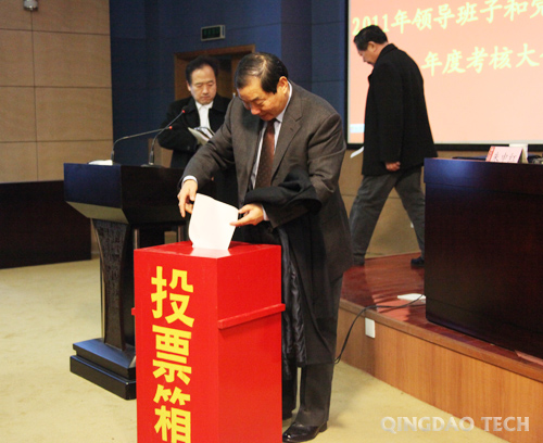 会上,104名考评委员会成员对学校处级领导班子和党政负责人进行了无记名测评,投出自己庄严的一票。