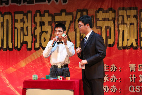 魔方二阶大陆排名第80名、世界排名第701名,三阶大陆排名第66名,世界排名第530名软件101班陈浩天魔方表演