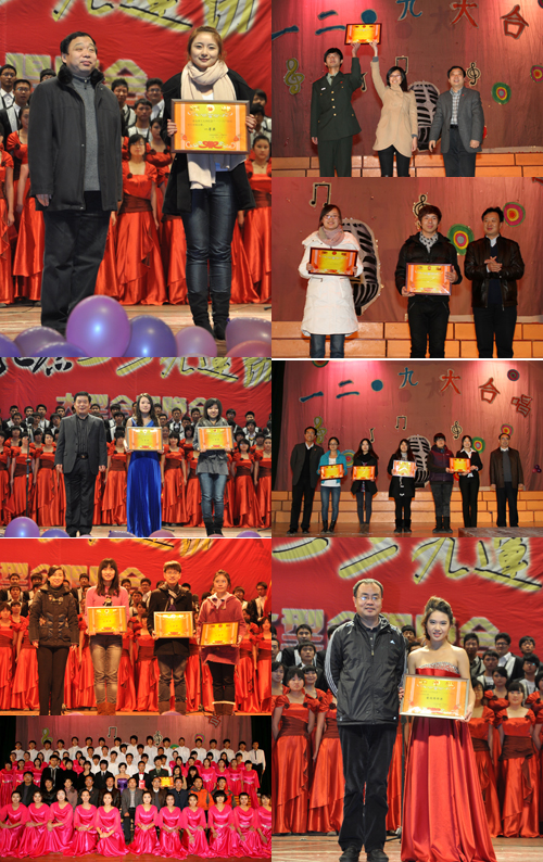 嘉陵江路校区、长江路校区比赛在大学生合唱团的表演曲目《走向复兴》中拉开帷幕,随后各参赛队伍依次登场参赛,《共和国之恋》、《踏歌起舞》、《在灿烂的阳光下》、《祖国不会忘记》等合唱曲目使比赛现场高潮迭起,精彩纷呈。最终,经过评委的认真评选,计算机工程学院代表队演唱的曲目《在灿烂的阳光下》和《爱我中华》,自动化工程学院代表队演唱的曲目《映山红》和《翻身农奴把歌唱》夺得嘉陵江路校区和长江路校区冠军,通信学院合唱队指挥邓文靖、管理学院合唱队指挥王经洋分别被评为最佳指挥。
