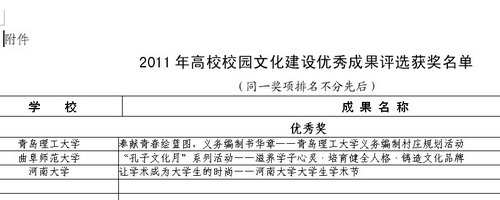 日前,由教育部主办的2011年高校校园文化建设优秀成果评审结果揭晓,伟德官网报送的校园文化建设成果《青春奉献绘蓝图 义务编制书华章——伟德国际1946bv官网义务编制村庄规划活动》从众多成果中脱颖而出,获得优秀奖。