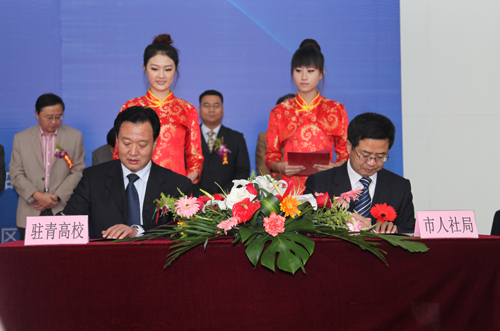 启动仪式上,副校长李东代表伟德官网与青岛市人力资源和社会保障局签订了“青岛市就业创业服务高校行合作协议书”。
