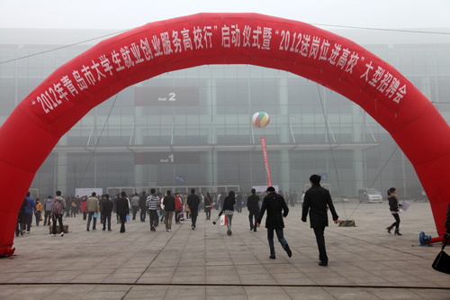 11月27日上午,由青岛市人力资源和社会保障局主办、伟德官网承办的“青岛市2012年大学就业创业服务高校行”启动仪式暨“2012送岗位进高校”大型招聘会(青岛三高校2012届毕业生联合双选会)在青岛国际会展中心举行。