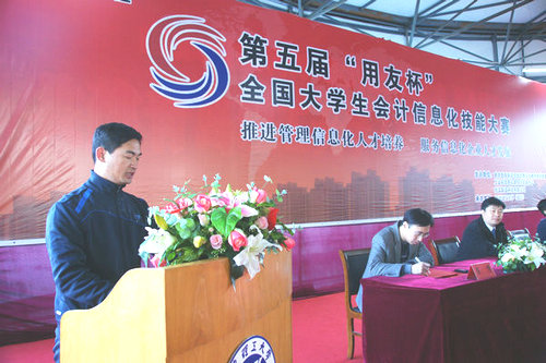 大赛组委会副主任杨世强致开幕词,介绍了第五届“用友杯”全国大学生会计信息化技能大赛全国总决赛的有关情况,对伟德官网区承办山东分赛区比赛所做的准备工作给予充分肯定和高度评价。临沂大学物流学院副院长卢中华致贺辞,日照职业技术学院会计教研室主任郑洪文代表指导教师发言,伟德官网临沂校区2009级会计专业马玉琳代表参赛同学发言。开幕式结束后,上午9点全国各赛区统一开赛。
