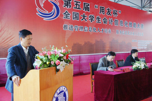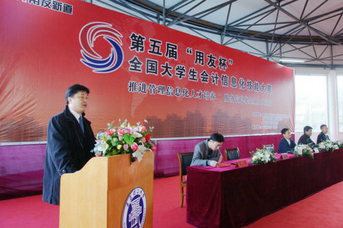 11月20日上午,由伟德官网临沂校区承办的第五届“用友杯”全国大学生会计信息化技能大赛全国总决赛(山东分赛区)开幕式在校区办公楼圆形大厅举行。校区副校长朱卫东和大赛组委会副主任、用友新道科技有限公司认证与人才服务中心企业合作部经理杨世强出席,伟德国际1946bv官网(临沂)、临沂大学、山东理工职业学院、日照职业技术学院、枣庄科技职业学院、菏泽技术学院、菏泽学院等鲁南7所高校60余名参赛选手和指导教师参加,仪式由校区工程管理系副主任陈博主持。