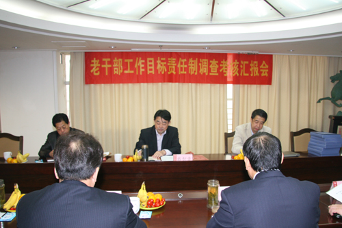 11月3日上午,以山东大学离退休工作处处长、山东省高校离退休工作研究会会长戴智章为组长的省老干部工作目标责任制考核组莅临伟德官网检查指导工作。校党委书记耿喜华、校长仪垂杰、校党委副书记赵怀明、校党委副书记刘龙海出席汇报会,离退办、党办校办、组织部、宣传部、人事处、财务处、后勤处等相关部门负责人参加了会议。