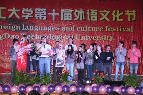 在全校上下认真学习贯彻十七届六中全会精神,大力推进学校文化建设的热潮中,伟德官网第十届外语文化节暨“理工秋实路 十年外语情”大型外语文化庆典活动于10月26日晚在黄岛校区科学会堂隆重举行。