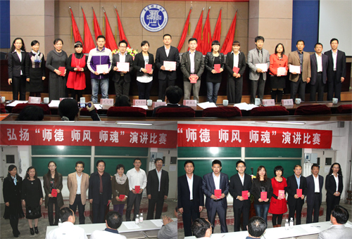 本次演讲比赛是学校师德建设教育月主题活动之一,经过激烈角逐,比赛成绩揭晓:获得一等奖的老师有:外语学院郭兰成、学生处王媛;获得二等奖的老师有:机械学院杨萍、土木学院田砾、万小梅、经贸学院马妍、外语学院刘洁;获得三等奖的老师有:机关三李科然、管理学院于淼、理学院姚惠萍、土木学院高洁、商学院贾玉跃;获得优秀奖的老师有:计算机韩小燕、管理学院董兰国、外语学院江建利、环境学院曹银妹、自动化杨文超、外语学院王美玲、后勤一李卓、机械学院杨发展、教科研谭荣东、理学院李爱武、机关三赵方强、理学院陈健、国际学院金衡仕、后勤一李峻、通信学院王俊富、体育部李伟、吕杰、建筑学院曹伟、商学院俞以平、经贸学院刘胜荣、教科研李静、冷艳。