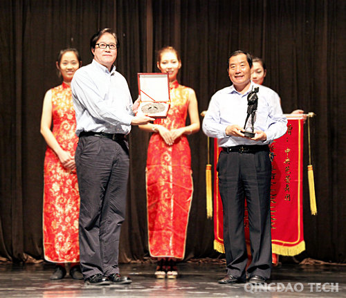 校党委书记耿喜华与王全兴副团长互赠锦旗与纪念品