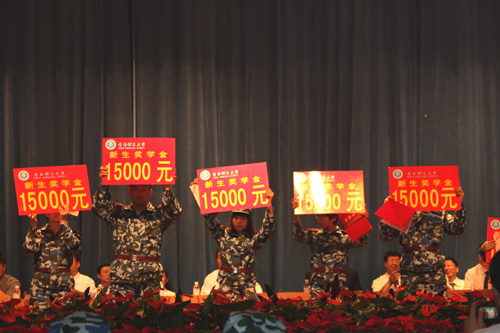 新生奖学金获得者上台领奖