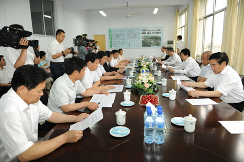 李群书记(中)听取汇报