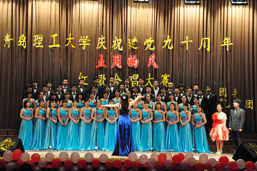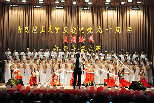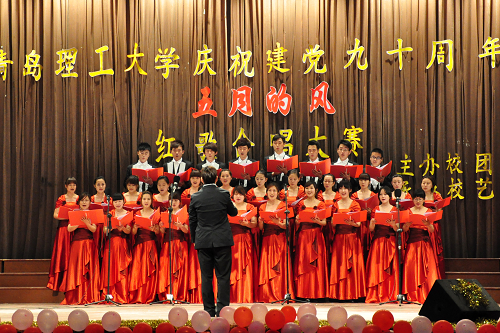 为庆祝中国共产党成立九十周年,回顾中国共产党成立九十周年来的光辉历程,教育广大学生铭记革命历史,坚定在中国共产党领导下走中国特色社会主义道路的信心和决心,在学生中唱响共产党好、社会主义好、改革开放好、伟大祖国好的主旋律,5月17日、18日、24日晚,由校团委主办的庆祝建党九十周年“五月的风”红歌合唱比赛分别在黄岛嘉陵江路校区、长江路校区、四方校区举行。