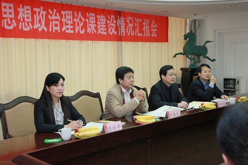 杨向荣副书记从学校基本情况及思想政治理论课建设总体情况、思想政治理论课建设情况、特色项目、存在的问题与整改措施等方面汇报了学校思想政治理论课建设情况。